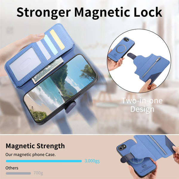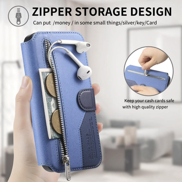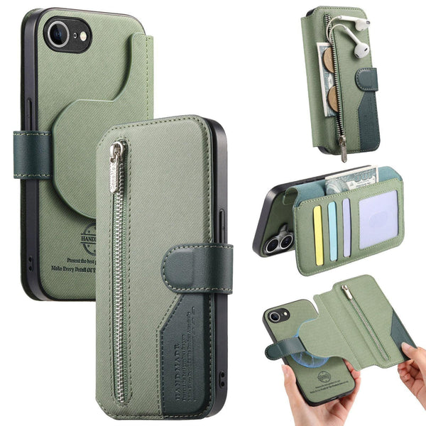 iPhone 16e Twill Fabric Mag Ring RFID Zipper Wallet Phone Case Experience premium protection and practicality with the iPhone 16e Twill Fabric Mag Ring RFID Zipper Wallet Case โ a stylish and functional all-in-one solution for your device. Crafted from durable TPU and PU leather, this case offers long-lasting wear resistance and a refined twill fabric texture for a sophisticated look and feel. The built-in zipper wallet and card slots provide secure storage for your essentials like cards, cash, and IDs, eliminating the need for a separate wallet. Equipped with RFID blocking technology, it helps protect your personal information from unauthorized scanning. The kickstand function lets you enjoy hands-free viewing in landscape mode, while the Mag Ring magnetic system supports wireless charging and allows effortless attachment to compatible magnetic accessories such as chargers, mounts, and holders. Key Features: