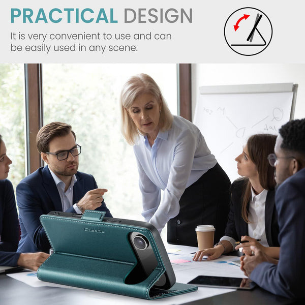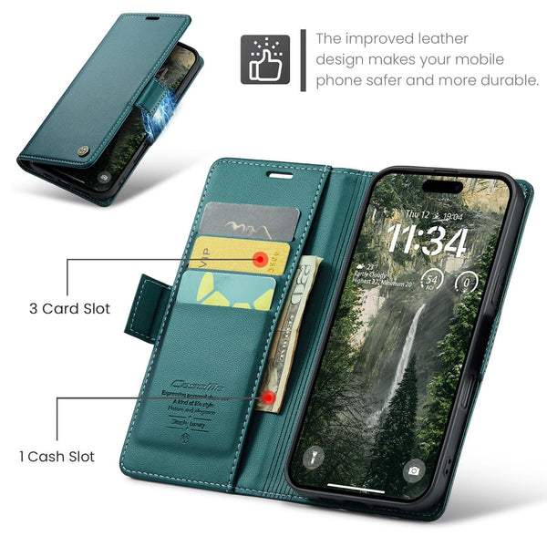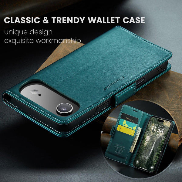 Introducing a stylish wallet cover designed for Apple iPhone 17 Air mobile phone. Crafted with a stylish PU leather material, this cover adds a deluxe look to your device. The flip front design of the cover has been specifically tailored to include a card slot and a photo ID slot, providing convenience and accessibility in one package. The magnetic closing latch ensures that your phone is secure and safe from accidental drops and it has RFID blocking built-in for your card security To guarantee that your phone stays protected from scratches and bumps it has a silicon phone holder for a perfect fit. The cover offers all-around protection to your device, so you can have peace of mind knowing that your phone is in good hands.