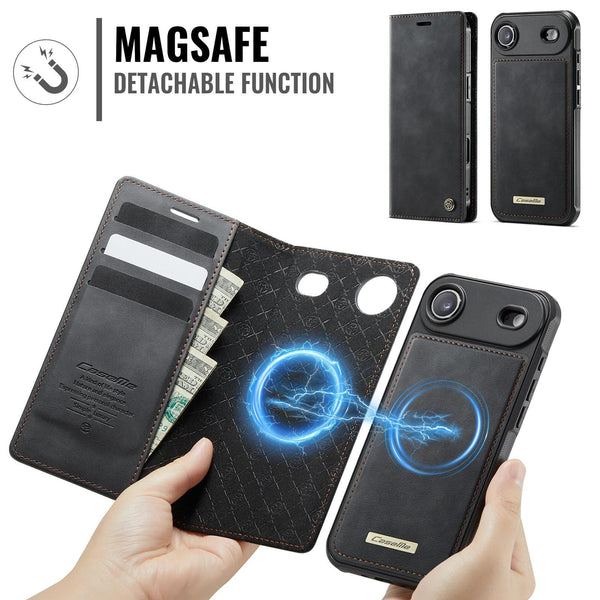 Apple iPhone 17 Air CaseMe C49 Wallet Flip Cover โ RFID Protection, MagSafe Compatible, Card Holder Protect and organize your essentials with the CaseMe C49 Wallet Flip Cover, designed exclusively for the Apple iPhone 17 Air. Combining premium materials with smart functionality, this case provides both style and everyday convenience. Crafted from durable PU leather and shock-absorbing TPU, the C49 offers reliable drop protection while delivering a comfortable grip. The soft microfiber lining safeguards your device from scratches, ensuring it stays in pristine condition. With MagSafe compatibility, the built-in magnet supports fast, wireless charging and secures your phone to magnetic mounts with ease. The detachable 2-in-1 wallet design features 3 card slots and a cash pocket, allowing you to carry your essentials or detach the slim shell when you prefer a lighter option. Equipped with RFID blocking technology, the CaseMe C49 keeps your cards safe from unauthorized scans and digital theft. For added functionality, the case also folds into a hands-free stand, making it perfect for streaming, reading, or video calls. Key Features: