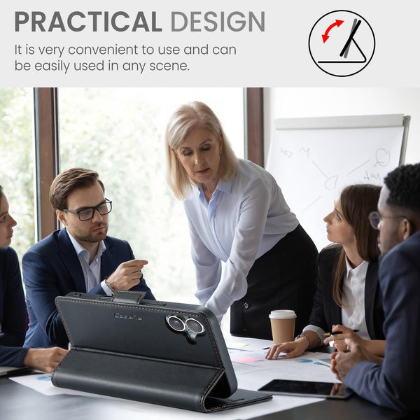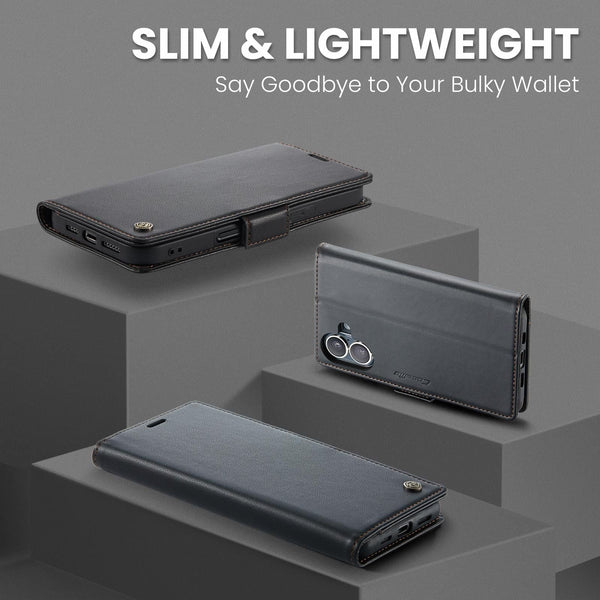 Introducing a stylish wallet cover designed for Apple iPhone 17 mobile phone. Crafted with a stylish PU leather material, this cover adds a deluxe look to your device. The flip front design of the cover has been specifically tailored to include a card slot and a photo ID slot, providing convenience and accessibility in one package. The magnetic closing latch ensures that your phone is secure and safe from accidental drops and it has RFID blocking built-in for your card security To guarantee that your phone stays protected from scratches and bumps it has a silicon phone holder for a perfect fit. The cover offers all-around protection to your device, so you can have peace of mind knowing that your phone is in good hands.