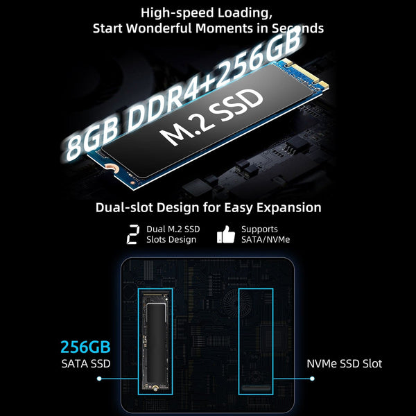 Introducing the BMAX Mini PC Computer, your ultimate solution for a compact and versatile Windows 11 Pro PC. This amazing device is perfect for any setup as it can be free-standing, wall-mounted, or monitor-mounted. Powered by an Intel N5095 Processor and an 8GB RAM + 256GB SSD Storage Memory, the B3 Pro Mini PC offers smooth performance fort everyday tasks. It also features an Intel 11th Gen UHD series graphics, Dual Band Wi-Fi, Bluetooth, Ethernet, and USB connectivity. With dual HDMI video outputs, you can connect up to 2 monitors for an immersive viewing experience. The device also comes with 4 x USB ports, providing ample connectivity for all your USB peripherals. Additionally, it has an extra M.2 SSD slot internally for future memory expansion. To make your life even easier, the BMAX Mini PC comes with Windows 11 Pro version pre-installed. Just connect it and go. Don't miss out on the chance to experience the power and versatility of the BMAX Mini PC Computer. B3 Plus Mini recommended usages scenarios : Office Computer, Home Entertainment, Family PC, Student/Home Office, Streaming, Entertainment, Internet, Smart TV Box, Warehouse Workstation