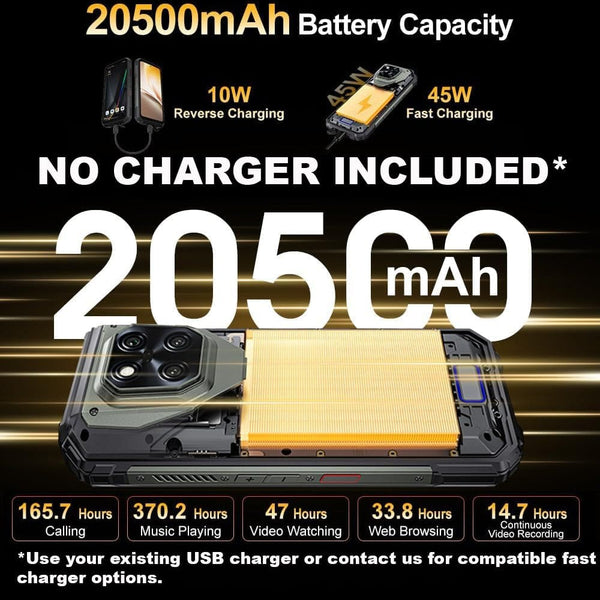 (Note: Does NOT ship with a USB charger . Use your existing charger or contact us forΒ compatible fast charging options)