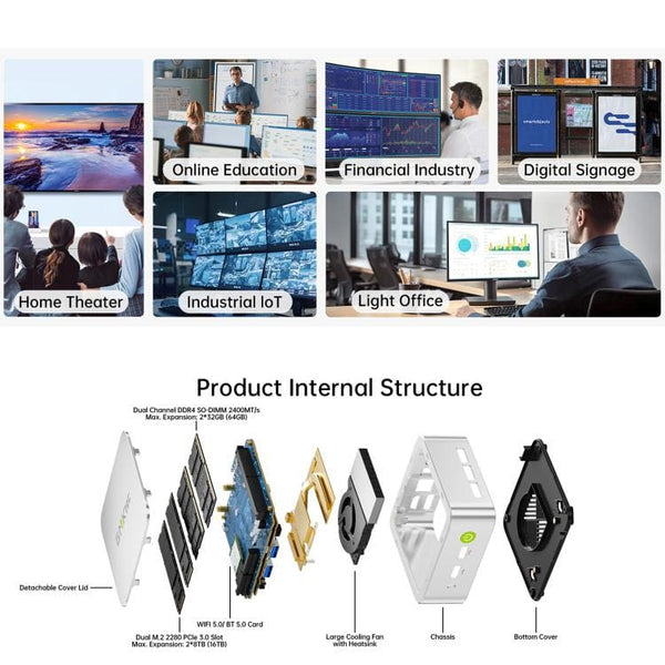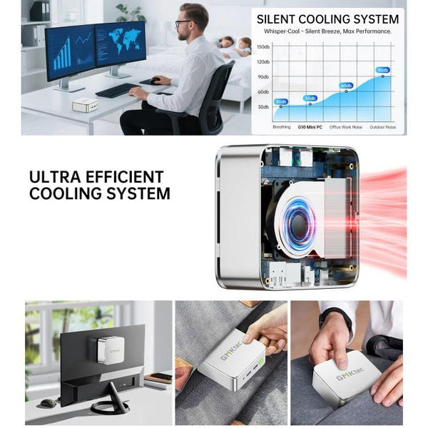 The GMKtec NucBox G10 is a powerful and ultra-compact Mini PC designed for efficiency, multi-tasking, and home entertainment. Despite its small footprint, it delivers robust performance driven by the AMD Ryzen 5 3500U processor, making it an ideal choice for streamlining your office work, browsing, and media consumption without taking up valuable desk space. Equipped with a substantial 16GB of RAM, this Mini PC ensures smooth and responsive operation, allowing you to run multiple applications and browser tabs simultaneously with ease. Storage is exceptionally fast and generous, featuring a 1TB SSD that provides lightning-fast boot times and quick access to all your files, programs, and large media libraries. The system comes pre-installed with Windows 11 Pro, offering enhanced security and productivity features right out of the box. Designed for maximum versatility, the NucBox G10 offers flexible display options with dedicated HDTV, TYpe-C and DisplayPort outputs, enabling easy connection to triple monitors or a 4K TV for an immersive visual experience. Connectivity is seamless with built-in Wi-Fi and Bluetooth, ensuring you can connect all your wireless peripherals and maintain a stable, high-speed network connection. This sleek aluminium, silver-toned Mini PC is the perfect solution for users seeking desktop power in a minimalist design. Whether you’re setting up a dedicated home theatre PC, a robust workstation, or a compact system for students, the NucBox G10 combines performance and portability in one impressive package. Main Features