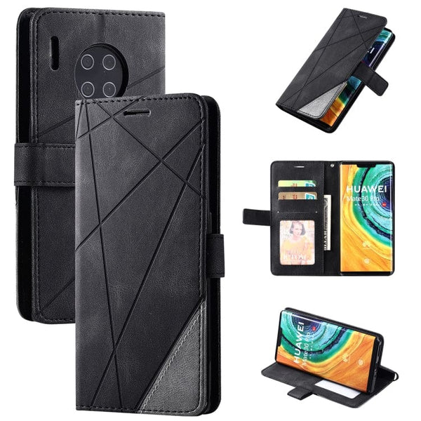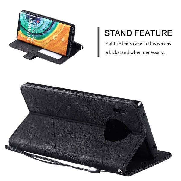 Rhombus patterned flip cover with TPU bumper protection, credit card slots, money pocket and magnetic clasp. It works as a phone stand as well Suits Huawei Mate 30 PRO