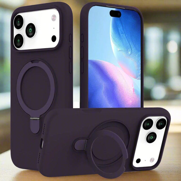 iPhone 17 Pro Silicone MagSafe Rear Cover with Metal Ring Stand Give your iPhone 17 Pro the perfect balance of style, durability, and functionality with this Silicone MagSafe Rear Cover. Crafted from a blend of PC, soft silica gel, and fabric-like textured material, it delivers a comfortable grip while providing reliable protection against scratches, dirt, and everyday wear. The built-in MagSafe compatibility ensures seamless magnetic wireless charging, letting you power up your phone quickly and conveniently without removing the case. A sleek metal ring stand adds extra functionality, allowing you to enjoy hands-free viewing in both portrait and landscape modes. Designed with precision cutouts, this cover provides easy access to all buttons, ports, and features while maintaining a slim and stylish profile. Key Features:
