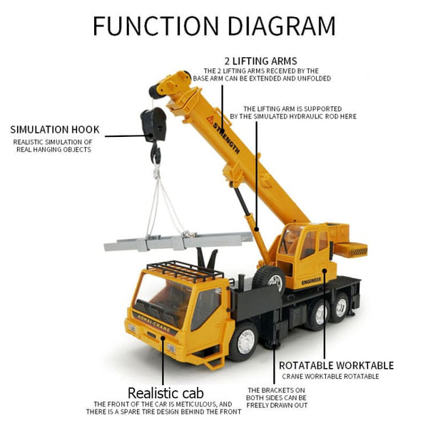 The MoFun 3822 Remote Control Crane is a fun and realistic construction toy, perfect for children aged 6 and up who love building and operating big machines. This RC crane brings the excitement of a construction site right to your playtime. Multi-Function Operation: Easily drive the crane forward and backward, turn left and right, and use the controls to raise and lower the crane boom and the hook, allowing kids to simulate real lifting action. Manually rotate the turret for precision work Easy-to-Use 2.4 GHz Control: The simple remote uses 2.4Ghz technology, which means a steady signal and minimal interference if you are playing with another RC toy nearby. Realistic Crane Design: This toy looks just like a real engineering crane, encouraging imaginative play and helping kids understand how construction equipment works. Durable Build: Ready for the sandbox or the living room floor, this crane is designed for active play. Get ready to lift and transport with your own MoFun RC Crane!MoFun 3822 RC Crane: Realistic Construction Toy with 2.4Ghz Control