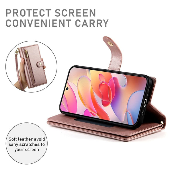 Flip Front Wallet Cover for Samsung Galaxy A36 5G - the ultimate phone protection solution for those who prioritize style and functionality. The phone holder inside the cover is made of molded TPU, providing excellent protection against drops and impacts. The flip front cover also provides full protection for your phone screen when not in use, safeguarding it from scratches and dust. But that's not all - this wallet cover is also equipped with credit card slots and a banknote pocket. The exterior zip pockets provide additional space for coins or small items, ensuring that everything you need is always within reach. The magnetic clasp on the front cover ensures that your phone and items are securely stored, while also allowing for easy access when needed.