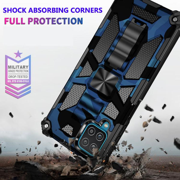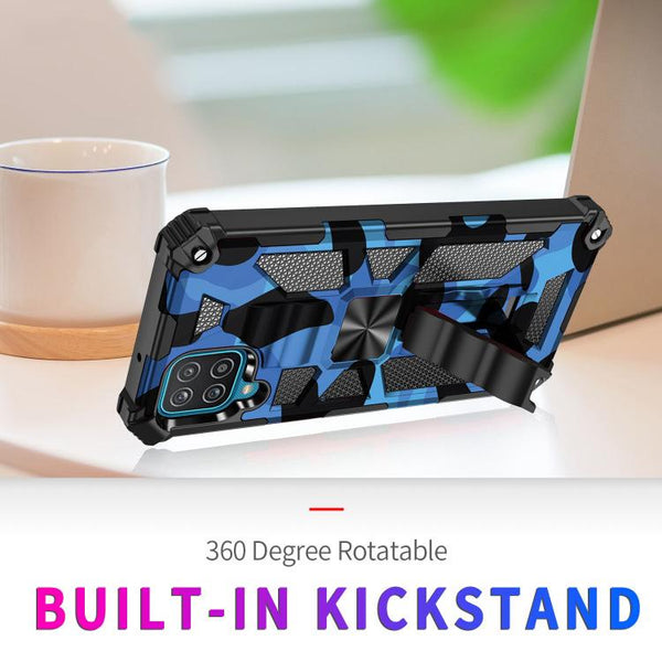 Shockproof Camo Rugged rear cover with fold out stand Rigid hard rear cover with reinforced corners Raised beveled edges to protects the screen and camera from accidental drops or knocks Metal patch for magnetic car mounts