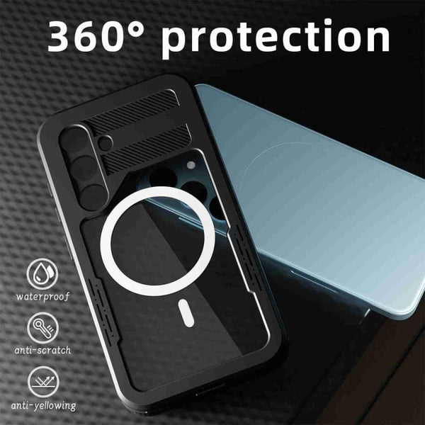 This RedPepper Mars IP68 Waterproof Phone Case is designed to provide ultimate protection for your Samsung Galaxy S25+ 5G. Made with layers of high-quality soft TPU and a durable PC plate, the case offers anti-drop and shockproof capabilities. The rugged armor design doesn't compromise on style, and it provides full access to all phone features, including the camera and charging ports. The case includes a built-in 6H PET screen protector to guard against scratches and dirt, and its unique sealing port design makes it dust-proof. While not fully submersible, it is water-resistant against sudden splashes. Additionally, a raised lip protects the screen and camera when placed on a flat surface. The integrated MagSafe magnetic design ensures compatibility with wireless charging. Specifications: Note: Follow included instructions before using in water. Stay within IP rated limits and test cover empty first