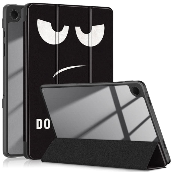 Introducing the Tri-Fold patterned cover with acrylic rear panel and stand, a versatile protective solution designed for tablets. This cover features an integrated flip front screen cover. The flip cover will sleep/wake the tablet when opened/closed. and the flip cover folds to form a tablet stand for hands-free viewing Additionally, the cover boasts a transparent acrylic rear panel, combining durability with a sleek design.