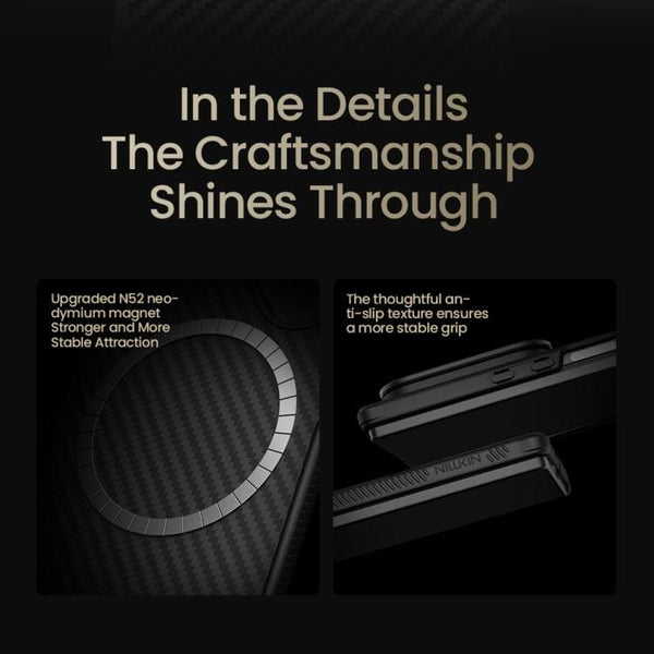 The NILLKIN Aramid Fiber Magnetic Version Case is engineered to offer premium protection and functionality for your Samsung Galaxy Z Fold7 5G. Utilizing real Aramid fiber, the same material used in aerospace and military applications, this case delivers exceptional strength without compromising the device's sleek, folding design. Aramid fiber is renowned for its incredible strength-to-weight ratio, making this case feather-light and exceptionally thin. The NILLKIN case offers a skin-like fit that preserves the original handling feel of the Galaxy Z Fold7 5G. The matte, non-slip surface also enhances grip, reducing the chance of accidental drops. This "Magnetic Version" features a built-in magnetic array, seamlessly integrated into the case structure. This provides instant, reliable compatibility with various magnetic accessories, including car mounts and wireless charging pads. The magnetic attraction is strong and secure, enhancing your device's versatility for hands-free use while driving or charging effortlessly without removing the case. Designed specifically for the future-forward technology of the Galaxy Z Fold7 5G, this NILLKIN case is the ultimate fusion of cutting-edge materials and sophisticated functionality. It wraps your expensive device in premium protection, ensuring your phone stays safe and stylish for the long haul. #Galaxy Z Fold 7