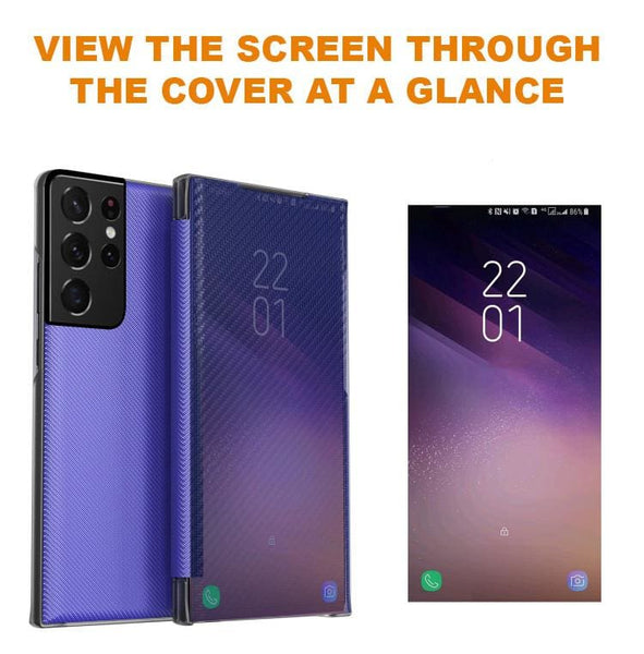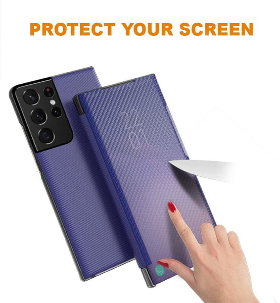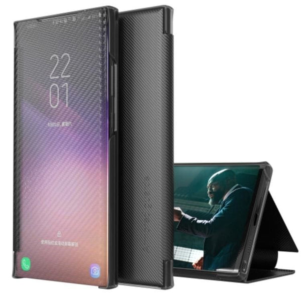 Semi Transparent Carbon Texture Flip Front Cover for Samsung Galaxy S10 Plus