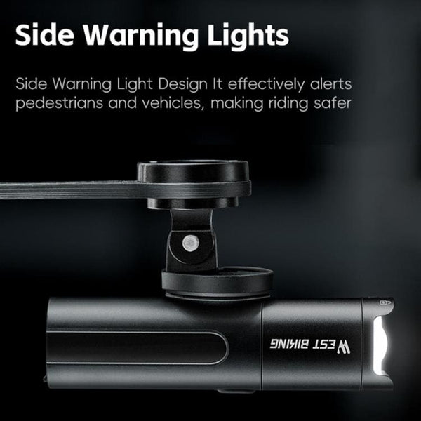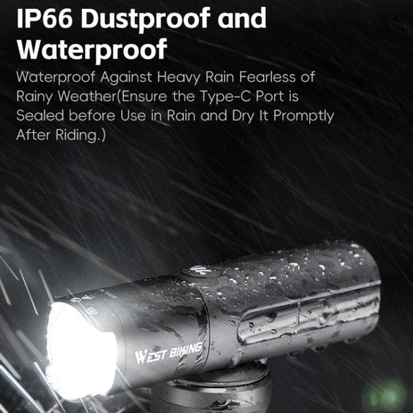 The WEST BIKING High-Brightness Rechargeable Headlight is engineered to illuminate your path and enhance your safety during night rides. With a powerful output of 800 Lumens, this headlight ensures exceptional visibility on roads and trails, transforming your cycling experience in low-light conditions. Designed for intuitive control, the light features six distinct brightness settings, allowing you to seamlessly customize the light level for any scenario. Choose from High, Medium-High, Low, and Energy-Saving modes for steady light, or Fast Flash and Slow Flash for maximum attention. A double-click instantly switches between the flash modes, while a single click adjusts the brightness, giving you immediate control without distraction. The light includes a smart power level indicator, ensuring you are always aware of your battery status so you never get caught in the dark unexpectedly. Powered by a 2500mAh rechargeable battery - recharged via Type-C USB The innovative, rotatable lens allows the lamp body to be installed in a multiple positions, providing optimal flexibility in mounting. This feature, combined with its compatibility across various handlebar types, means you can easily adjust the lens direction to perfectly match your cycling setup. For convenient transport, the light also boasts a locking mode to prevent accidental activation and battery drain while the product is stowed in your bag.Main Features